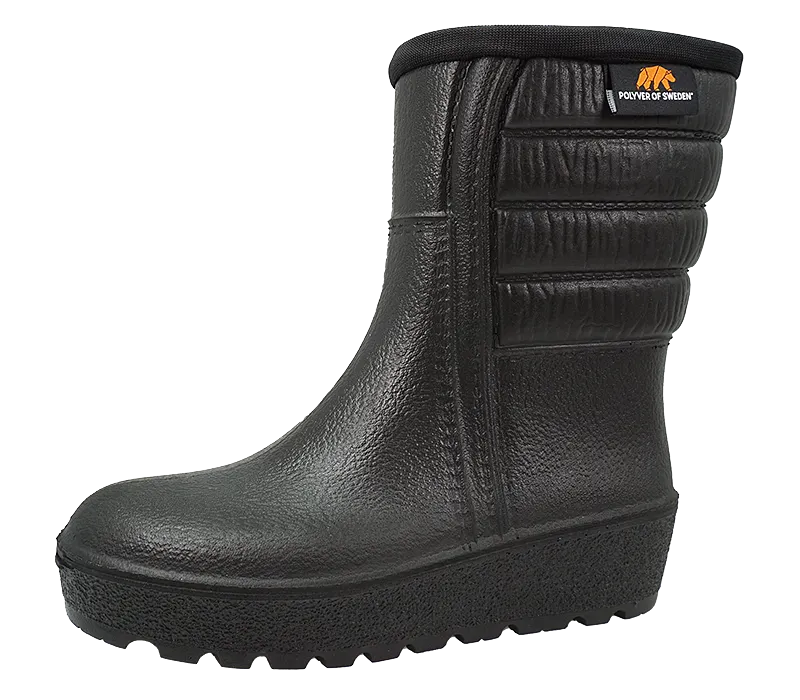 Information: Väldigt varma stövlar. Vattentäta och med syntetiskt pälsfoder. Finns på lager i storlek 35-39. Tillverkade i Sverige. Vikt 1300 gram/par i storlek 39.