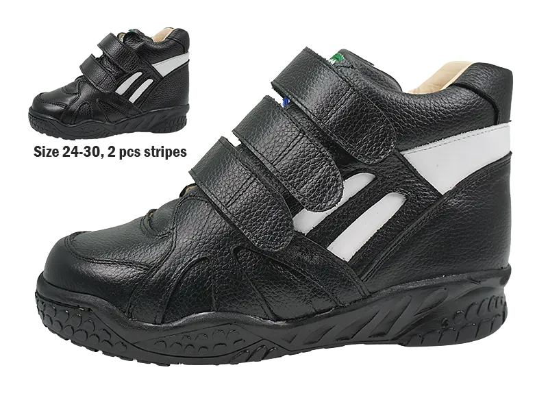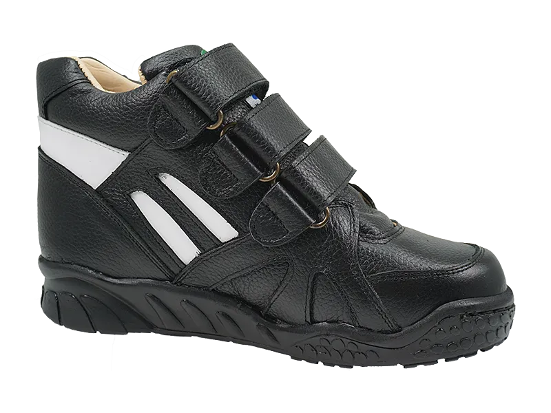 Information: Stabil sportkänga i svart skinn. Vikt 590 gram/par (Stl 30). Lagerhålles i Normal samt Ortosläst (ES) i storlek 24-45 och går att splitta i olika läster/storlekar. Kan även fås i andra läster som beställningsvara med 4-5 veckors leveranstid. CE-certifierad enligt MDR 2017/745. Kontakta oss för mer information.