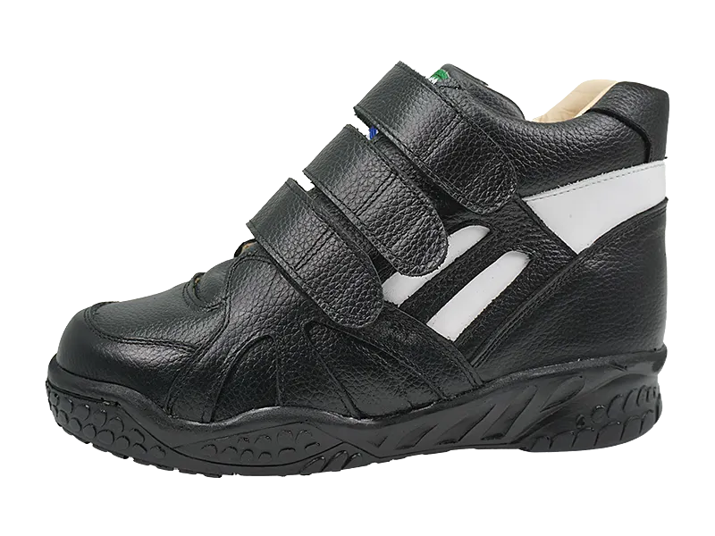 Information: Stabil sportkänga i svart skinn. Vikt 590 gram/par (Stl 30). Lagerhålles i Normal samt Ortosläst (ES) i storlek 24-45 och går att splitta i olika läster/storlekar. Kan även fås i andra läster som beställningsvara med 4-5 veckors leveranstid. CE-certifierad enligt MDR 2017/745. Kontakta oss för mer information.