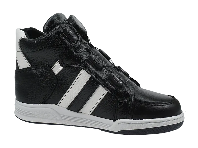 Information: Sportkänga med plats för individuella fotbäddar i svart och vitt skinn och med Freelock knäppning. Ce-certifierad enl 2017/745. Lagerhålles i Normal och Ortosläst (ES) i storlek 24-45. Kan även fås i andra storlekar som beställningsvara med 5 veckors leveranstid.